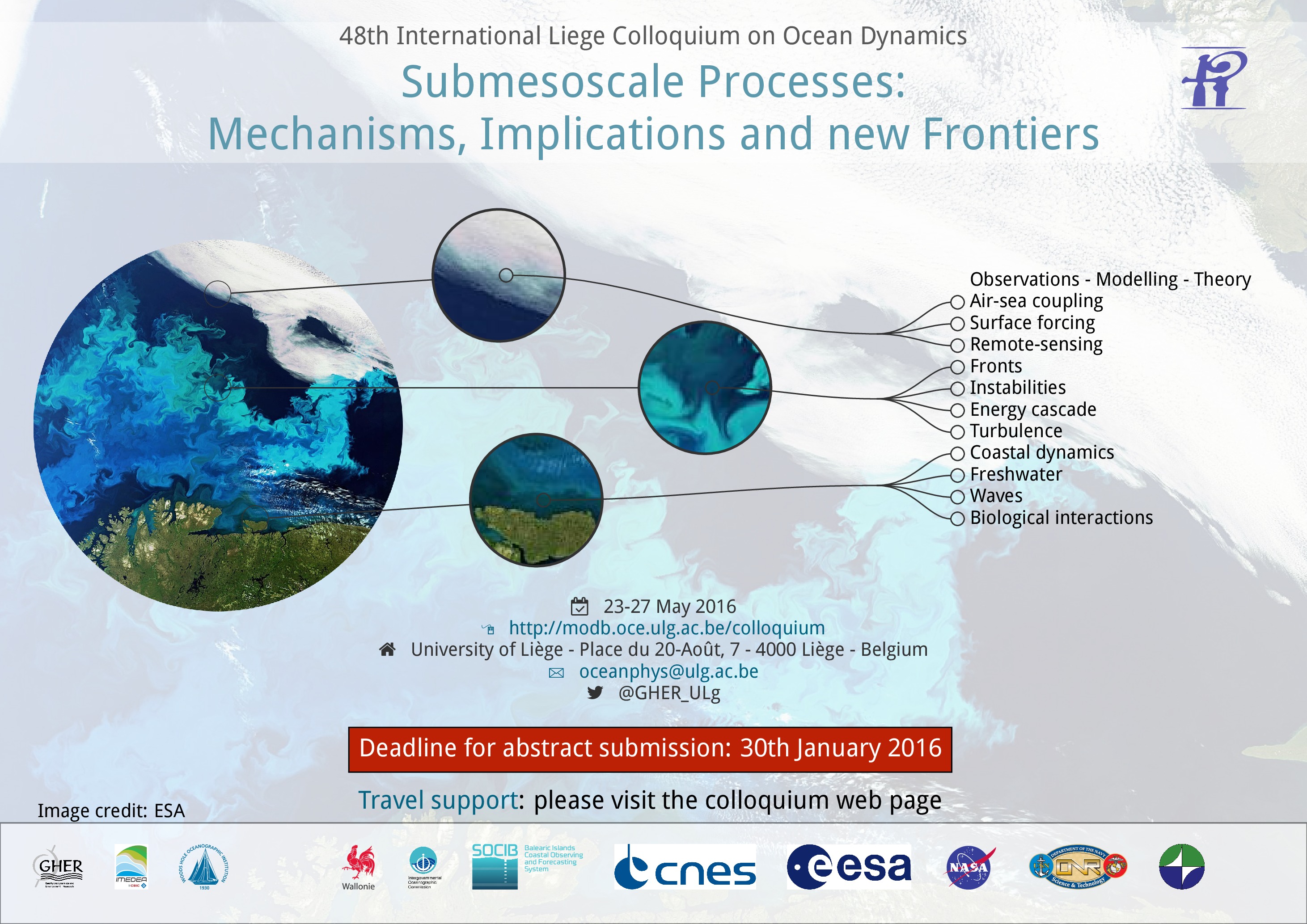 The 48th International Colloquium on Ocean Dynamics will take place in Liege, May 23-27, 2016.
