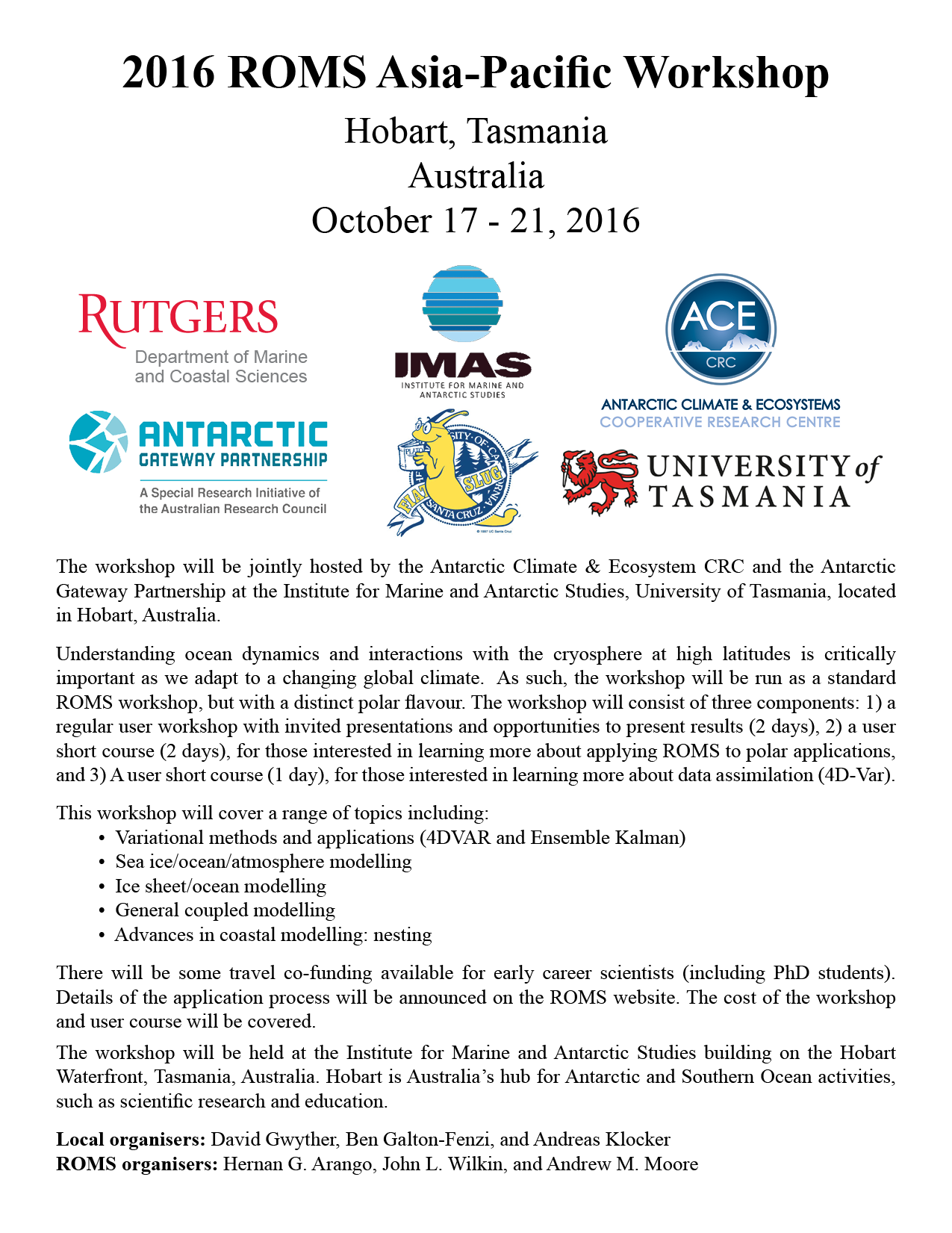 2016 ROMS Asia-Pacific Workshop, Tasmania - 1st Notice