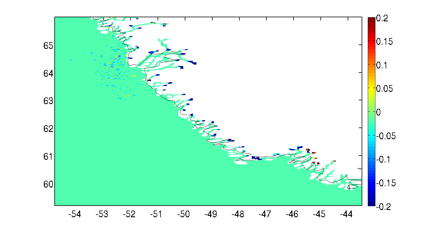 Clearly, there are something (noise or so)? I have also tried to give a very small discharge rate, say 2m^3/s, the results are almost identical. But if I changed the Salinity with time in the river forcing file (with river_flag as 2) to simulate freshwater input, even still with ZERO discharge rate, I can still clearly see the big difference at all the river input locations. Not sure what is wrong. Can anyone explain to me what I should do to correct this?