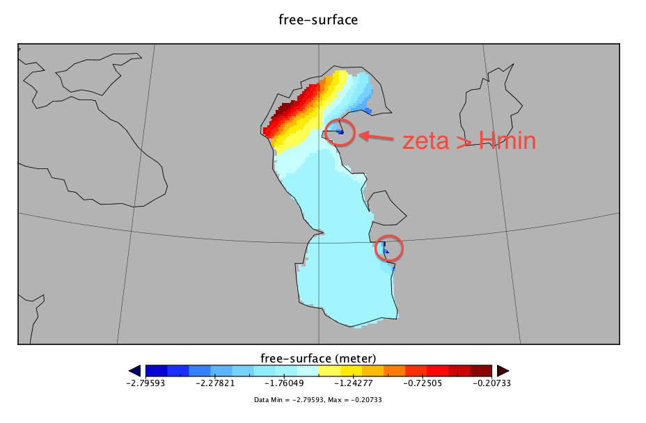 No, i did not activated WET_DRY is this case but i'll plan to activate it in the production run. This could be also effect of the storm surge but i am not sure. i could change the code to write the zeta value in this cell. it might be a negative value greater than the cell depth. According to my previous runs, the zeta oscillates too much in a small time scale over the northern Caspian Sea but i have no idea about that. it might not be realistic.