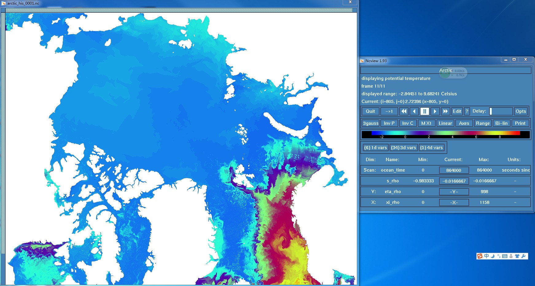could anyone help me? i am in trouble when i make a climatology run in Arctic with ROMS sea ice.Fist, I make forcing file which contain many variabls include Pair Tair Qair Uwind Vwind lwrf_down swrad rain.The data i used is monthly average COADS data. my netcdf file attributes: