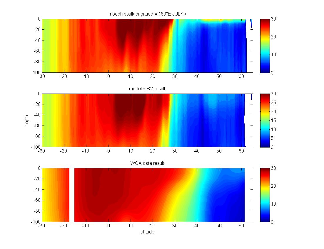 I have run ROMS smoothly,but when i check the rerult,i find that the temperature which get from ROMS is much higher in some regions,and much lower in others, as is shown in the figure along with the latitude line.i have calculate 15 years,it is the 15th resut! could you give me some advice? thank a lot!