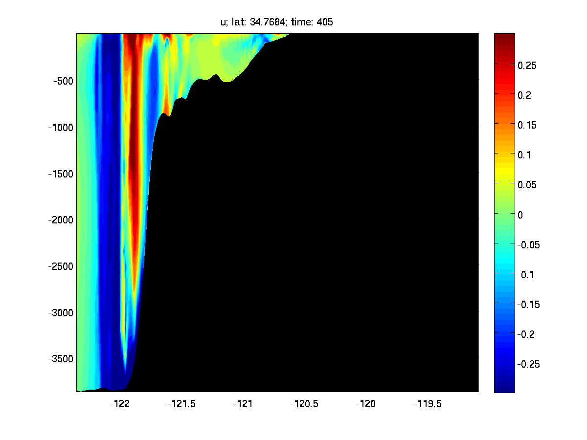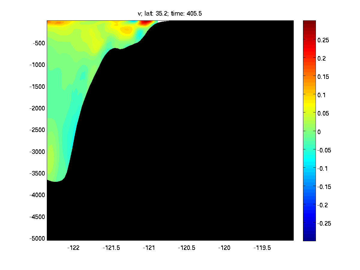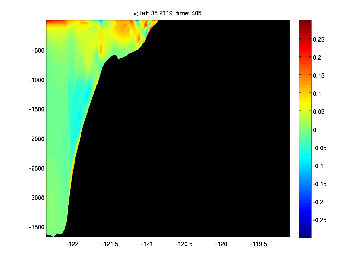 I am running a ROMS simulation with prescribed BC and initial condition from an existing model solution. However when I look at the time evolution of the velocities at the northern boundary and also an arbitrary cross-section in the middle of the domain, I see this really strange irregularity develop from surface all the way to the bottom. But such irregularity doesn't exist in the parent grid that I extract the BC and initial condition from.