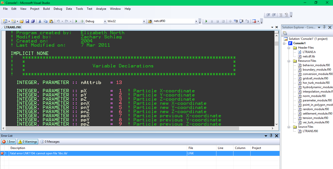 1. It looks like the error it is a problem with changes to Visual Studio (https://social.msdn.microsoft.com/Forum ... =vcgeneral). I'm sorry that I can't help more with this. I use ifort and gfortran now and have not kept up with changes in Visual Studio.