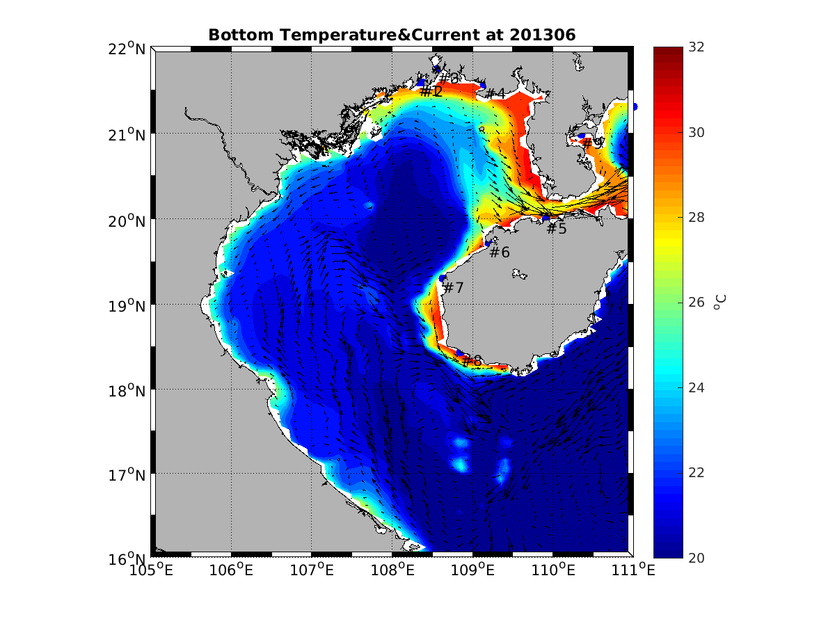 Attached are 2 monthly averaged plots of two revisions about bottom temperature&velocity at June 2013 .The current patten is almost the same while newer revision shows a faster current and warmer bottom water,especially at the coastal zone.