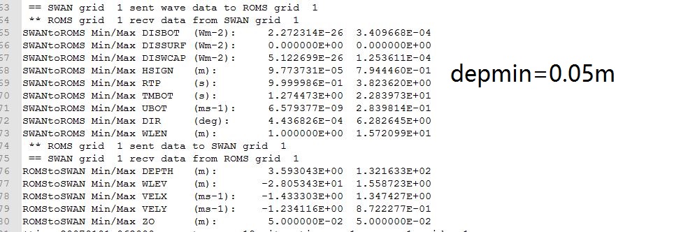 3) I change depmin=0.05 to depmin=1 (same as DCRIT )in my swan.in, to exclude dry points during wave computations. why some parameters of SWAN turn into zero during the data exchange.