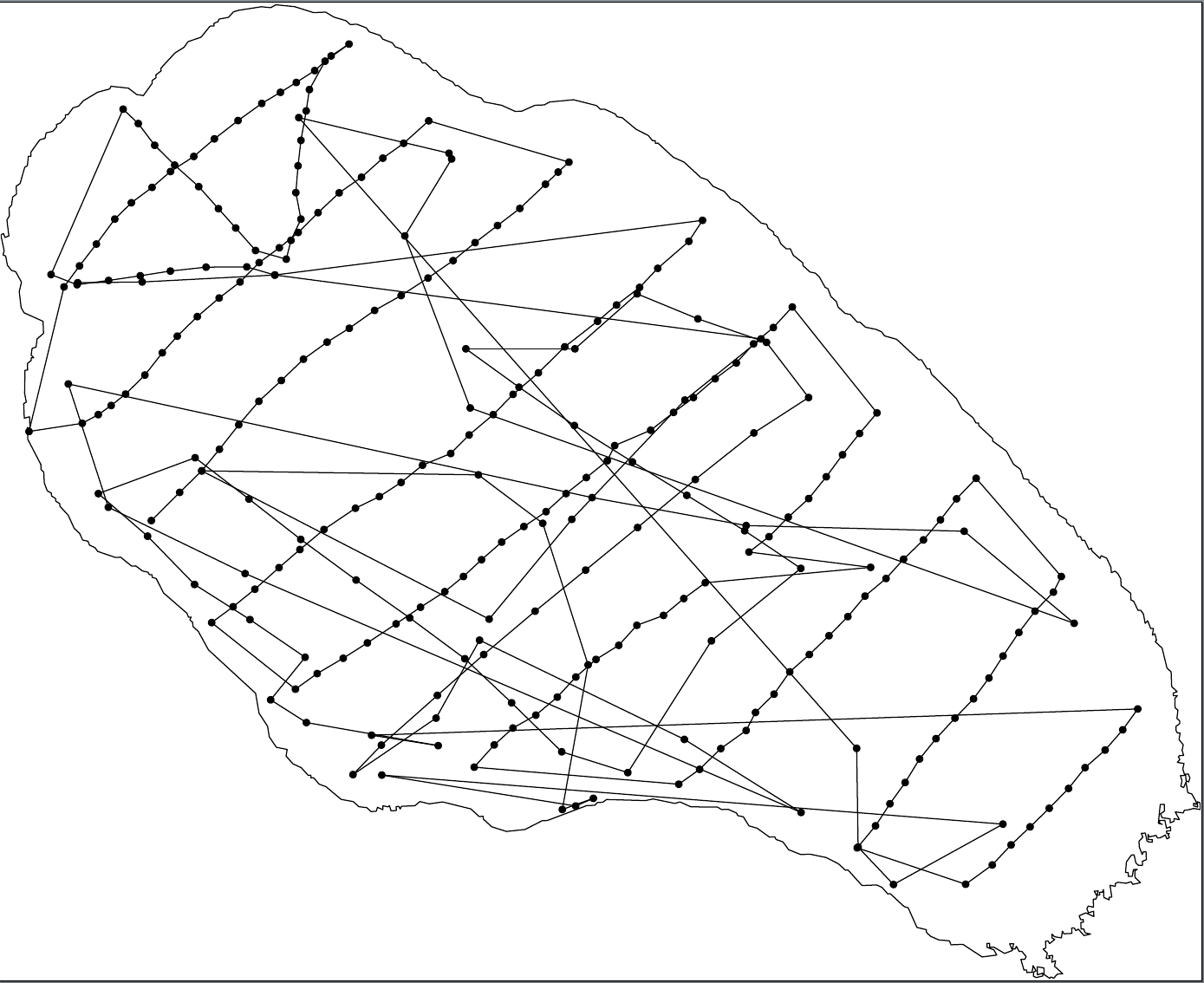 a set of point measurements from a boat: the depth was measured by echo sounder accompanied by GPS,