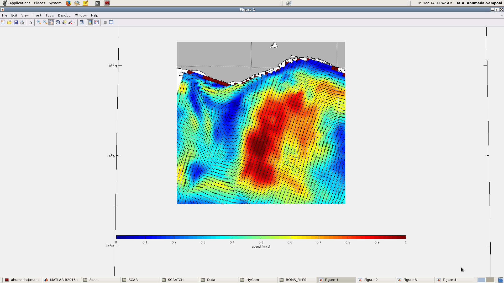 This is a part of the matrix, where you can appreciate the extreme velocity values near the coast