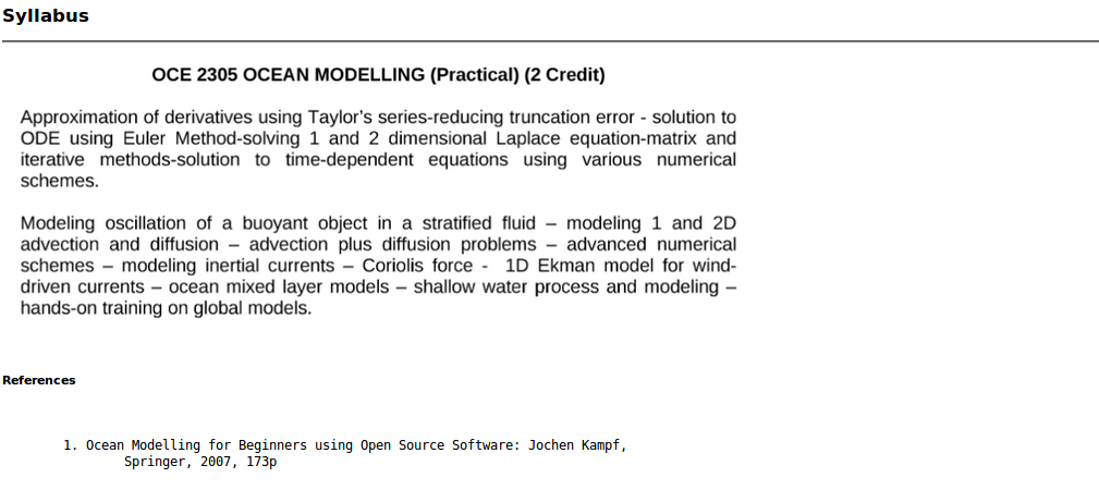The following is the syllabus of Department of Physical Oceanography CUSAT, splitted into theory and practical sections.