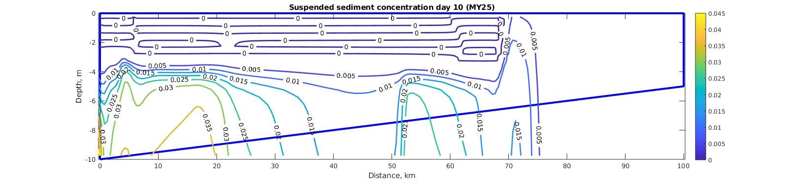 A result I got using Estuary_test was SSC in the range of 0-0.1 kg m-3 (attached). One reason for the difference could be that in Warner et al. (2005), the units of SSC seem to have been mg L-1 based on their Fig. 2.