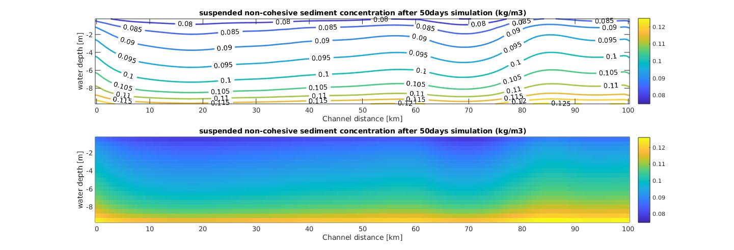 Anw, when I modified the estuary test case (domain is same, change into flat seabed, without river flow, constant flow from western edge) and tried to change the lateral boundary condition in sediment input file, I found something interesting.