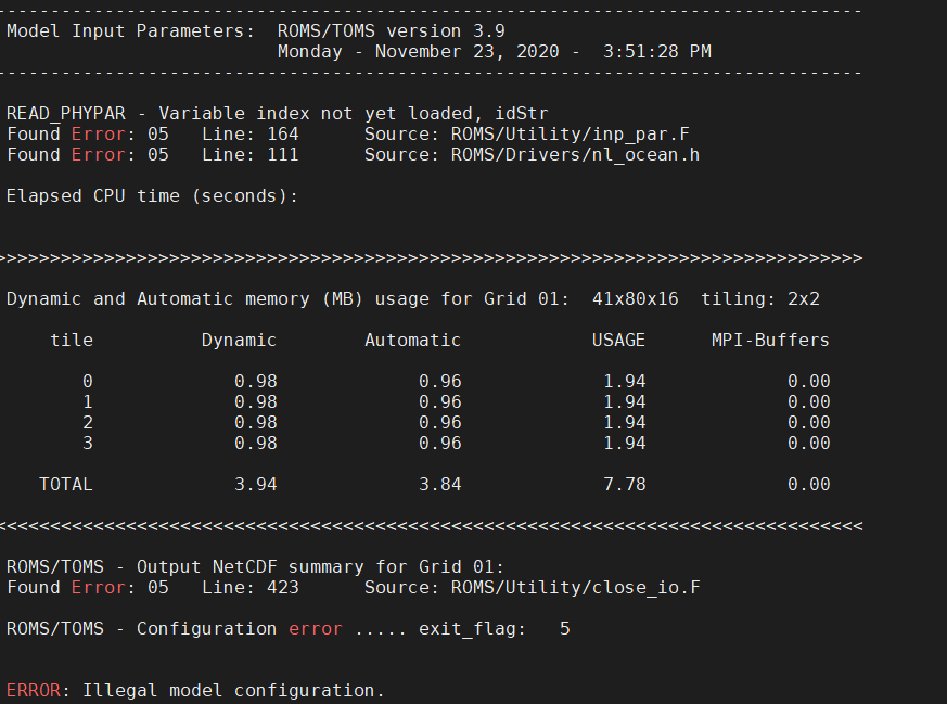 Hi , I am currently new to ROMS, compile is successful, but I got the error messgae when trying to run the default upwelling case,