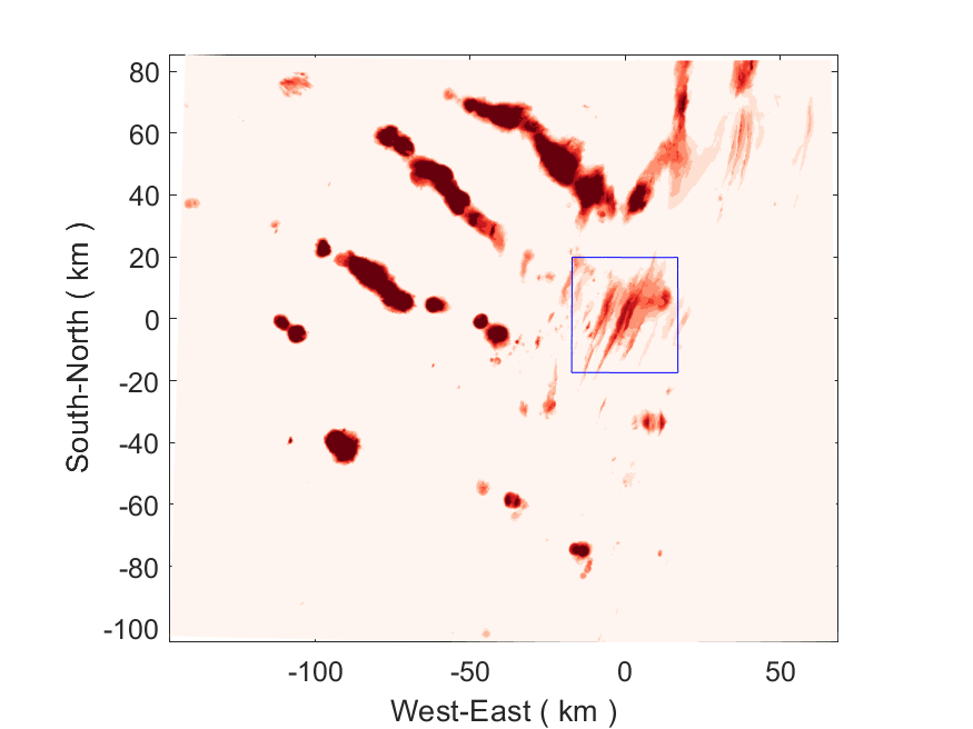 I have attached a few plots from a recent experiment that shows the simulated flow field near a ridge segment at 2100 m depth over the refined grid that is embedded in a coarse grid. There is a map that shows the bathymetry with the full domain and the outline of the nested fine grid. The refinement ratio is 5:1. The two plots that show the flow field are from two parallel runs wherein one-way and two-way nesting are used. Comparing the two plots, the results from the two-way run seems problematic as the currents appear to be disrupted at the boundaries whereas the one-way run shows no such disruption. From the answers I got from the forum on my previous post, I suspect the problem lies in the mismatch between the refined and coarse bathymetries. However, in this current experiment, I have relaxed the refined bathymetry to match the coarse bathymetry near the nesting boundaries. Also, if the problem is caused by bathymetry mismatch, it is interesting that two-way nesting is affected to a much greater degree than one-way nesting.