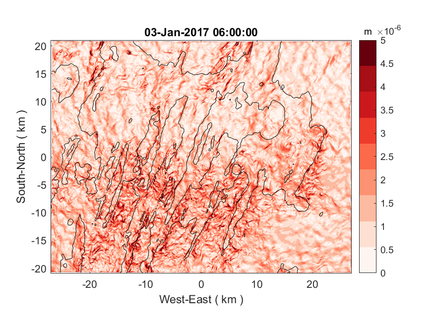 Thanks a lot for all the instructions. I managed to rebuild my grids using the fine-to-coarse approach and finished a test run using one-way nesting. The refinement ratio between the coarse and fine grids is 3. I have attached an animation showing hourly sampled sea-surface gradients over a 2-day span since the start of the simulation. Unfortunately, those much dreaded horizontal strips are still there despite the change in the domain size of the fine grid and switching to the fine-to-coarse approach. Note that those stripes seem to come and go like a surface wave originating from the southern nesting interface. As Stefan pointed out previously, the wavelength suggests a period of 30 sec, which is the coarse-grid time step. So it seems that a perturbation in sea surface is introduced at the southern interface each time the fine grid reads outputs from the coarse grid. I do not know if this is a time stepping issue as suspected by Ivica but my previous test seemed to suggest those stripes are gone after using the same time step for both fine and coarse grid.