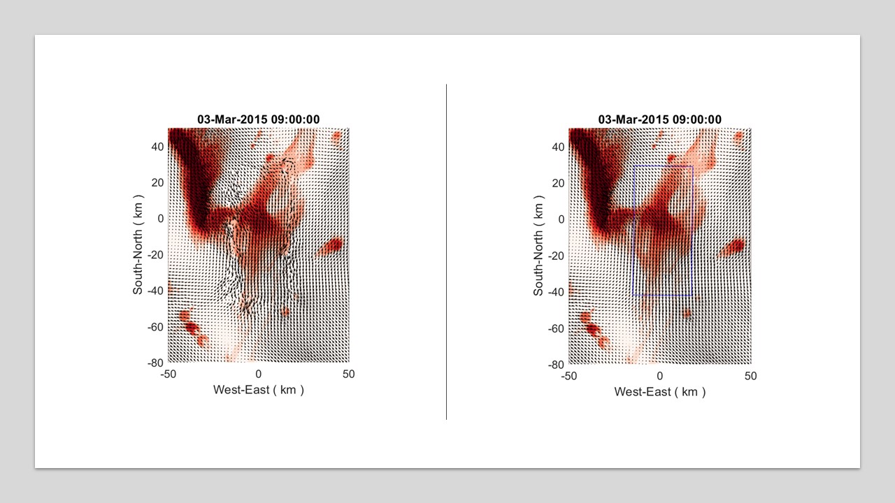 The plots below show 2D velocities and the 3D velocities sampled at 1000 m depth. The two-way results are on the left and the one-way results are on the right. For those one-way results, I averaged the fine-grid solutions based on the 5:1 refinement ratio and used the averages to replace the coarse-grid solutions at collocated grid points. It is noticeable that the two-way results show apparent discontinuities near the nesting interface. The disruption in flow mostly occurs at the locations where the bathymetry changes significantly across the nesting interface. In comparison, the one-way results are much smoother, in which the nesting interface appears almost transparent, which is a sign that the interface is behaving properly. Such differences between one-way and two-way experiments are persistent in all the tests I have done that feature realistic bathymetry as shown in my previous posts.