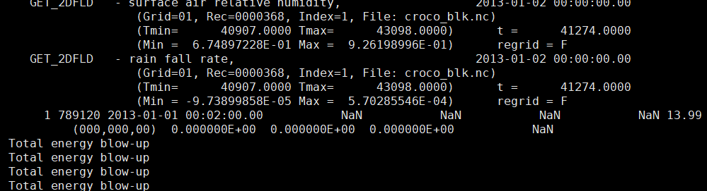 Also, I tried to compile and run without ice module, and it stops also in the first time-step, and the problem indicates: