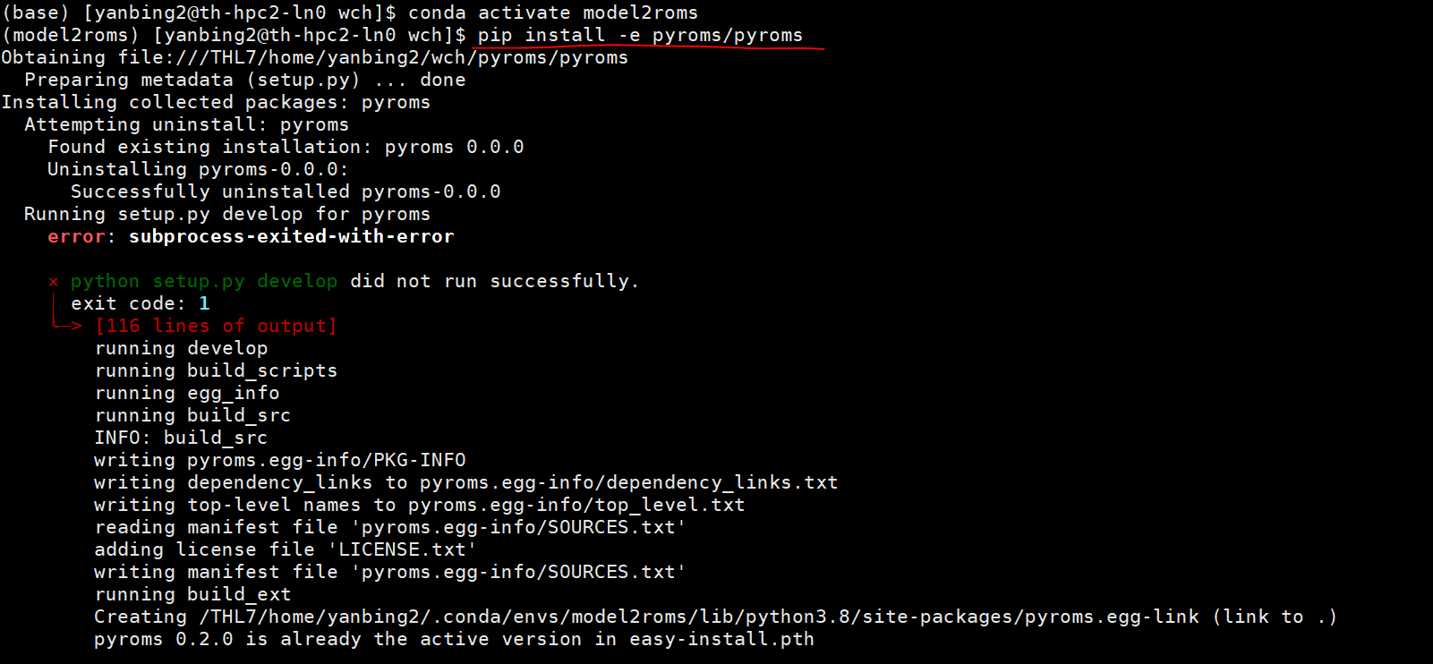 All the three steps above went smoothly, but an error occurred when installing Pyroms: