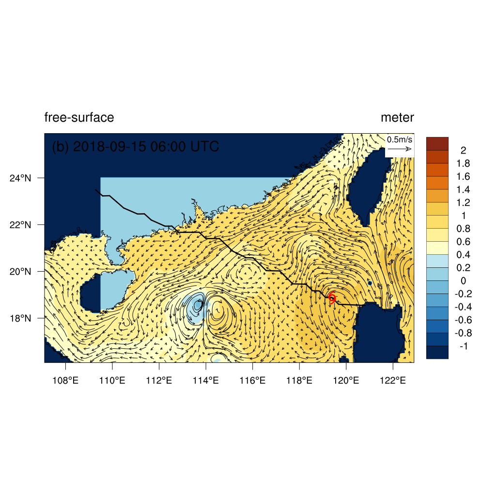 I have recently been using wrf-roms coupling to simulate a typhoon in the South China Sea. However, according to the roms output, the flow field is showing strange vortices in the southern part of the simulation area, this simulation is from 2018-09-15 to 17, the flow field diagram is below, when I try to simulate 13 to 17, the model crashes on 15, again showing a vortex causing high flow velocity.