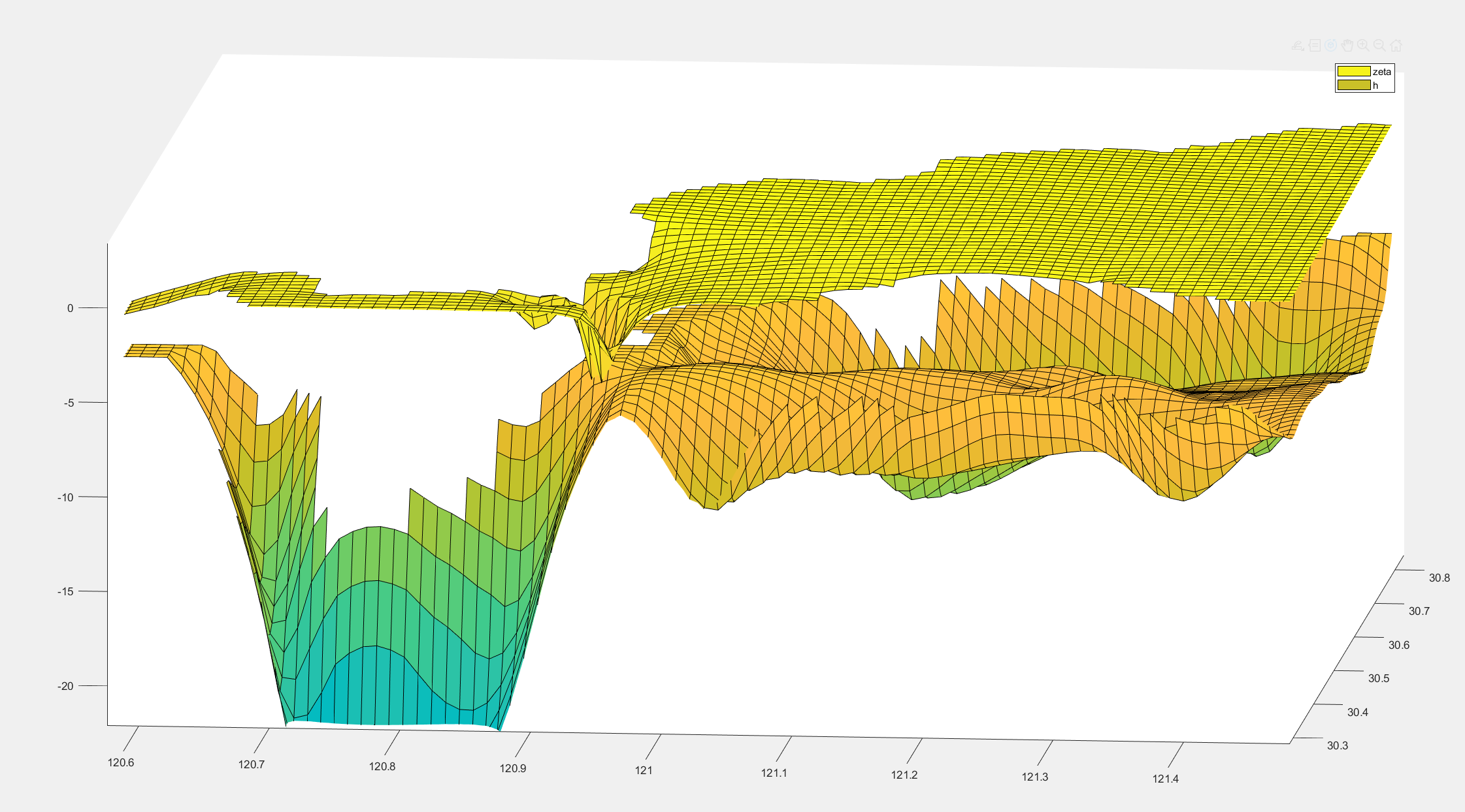 The following is my model configuration: 1km * 1km, rectangular grid, tidal forcing (Hangzhou Bay has a strong tidal effect), atmospheric forcing, boundary forcing, river forcing. The dt is 60 seconds. Using a shorter step will also cause errors. Detailed parameters are in the attachment.