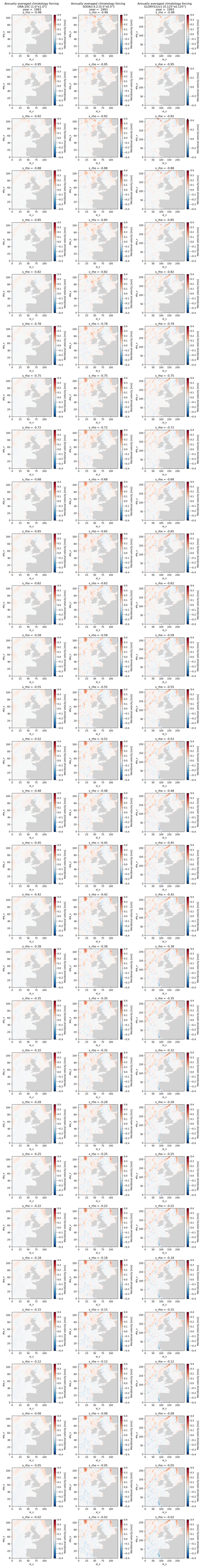 These are the annual averages of the climatology lateral forcing file. Some figures compare annual values of temperature, salinity, sea level, momentum for the different forcing files. Some other figures show the initial values for momentum for the SODA forcing file, whereafter the model blows up.