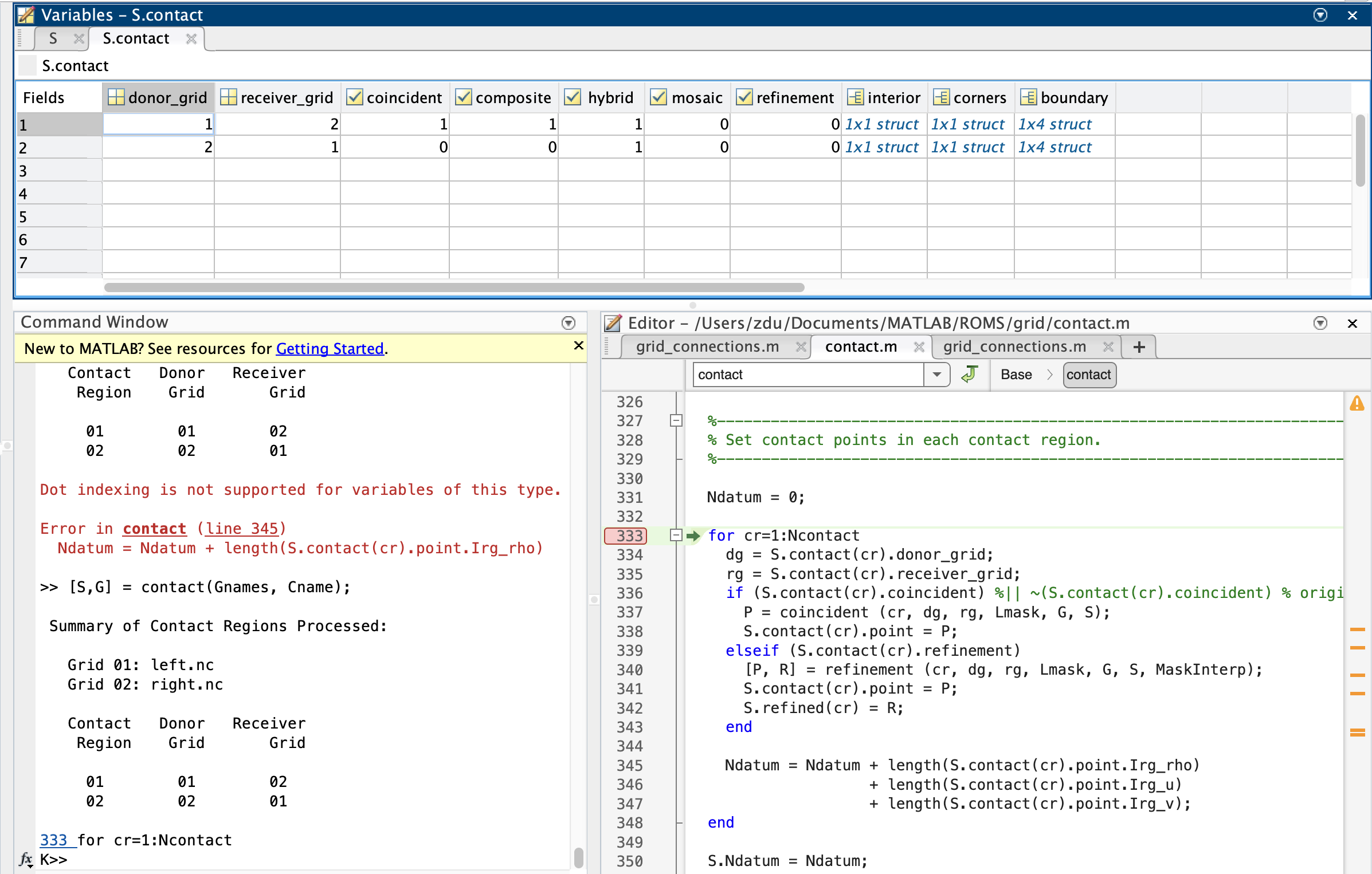 dg = S.contact(cr).donor_grid;Does anyone have a modified contact.m script that can work for my case? I hope that the ROMS developers could revise grid_connections.m and contact.m, thank you!