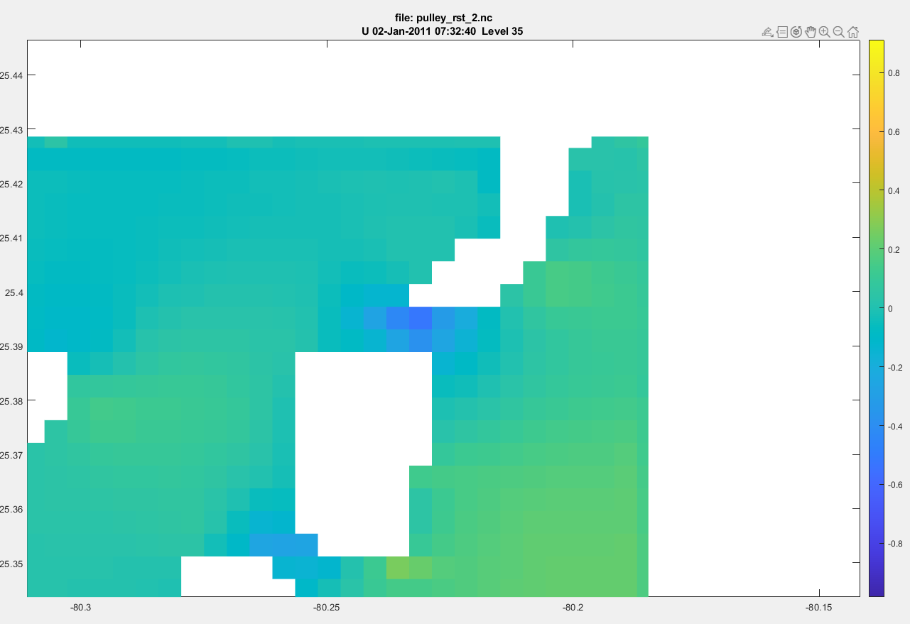 Again, two-way nesting works just fine so I doubt there is a problem with the ROMS input data. As for one-way nesting, it's as if ROMS sees the forcing on the edges of the child grid that comes from zeta on the parent grid but chooses to ignore it. I really don't see how ROMS can properly force the child grid as a two-way nesting experiment but completely fail as a simpler one-way nesting experiment. If there is a problem with my compile flags then it is too subtle for me to pick up.
