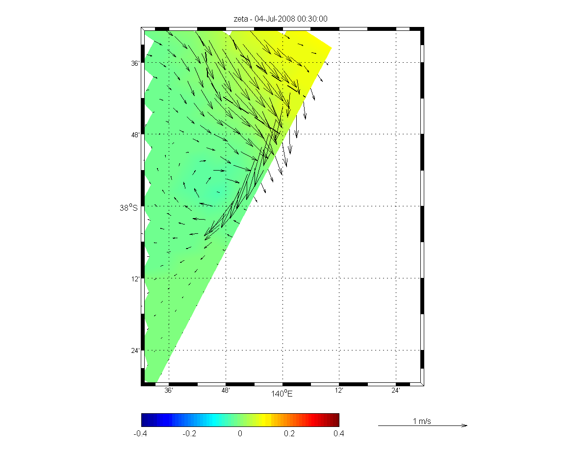 The colours here are sea level. The sea levels look fine. So it seems like the overlarge velocity is due to continuity (ubar too small at Iend).