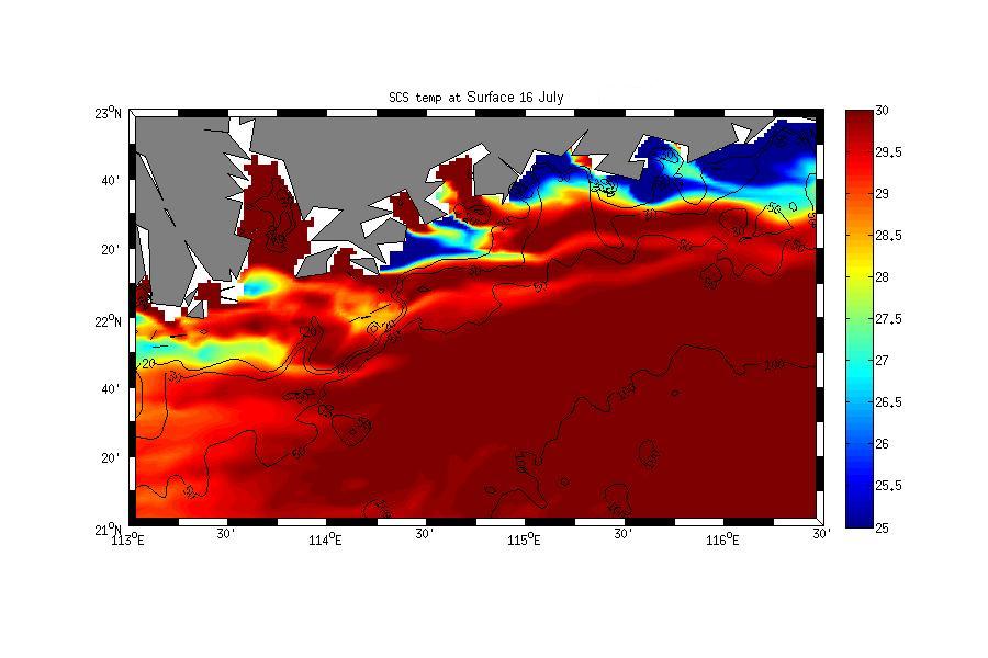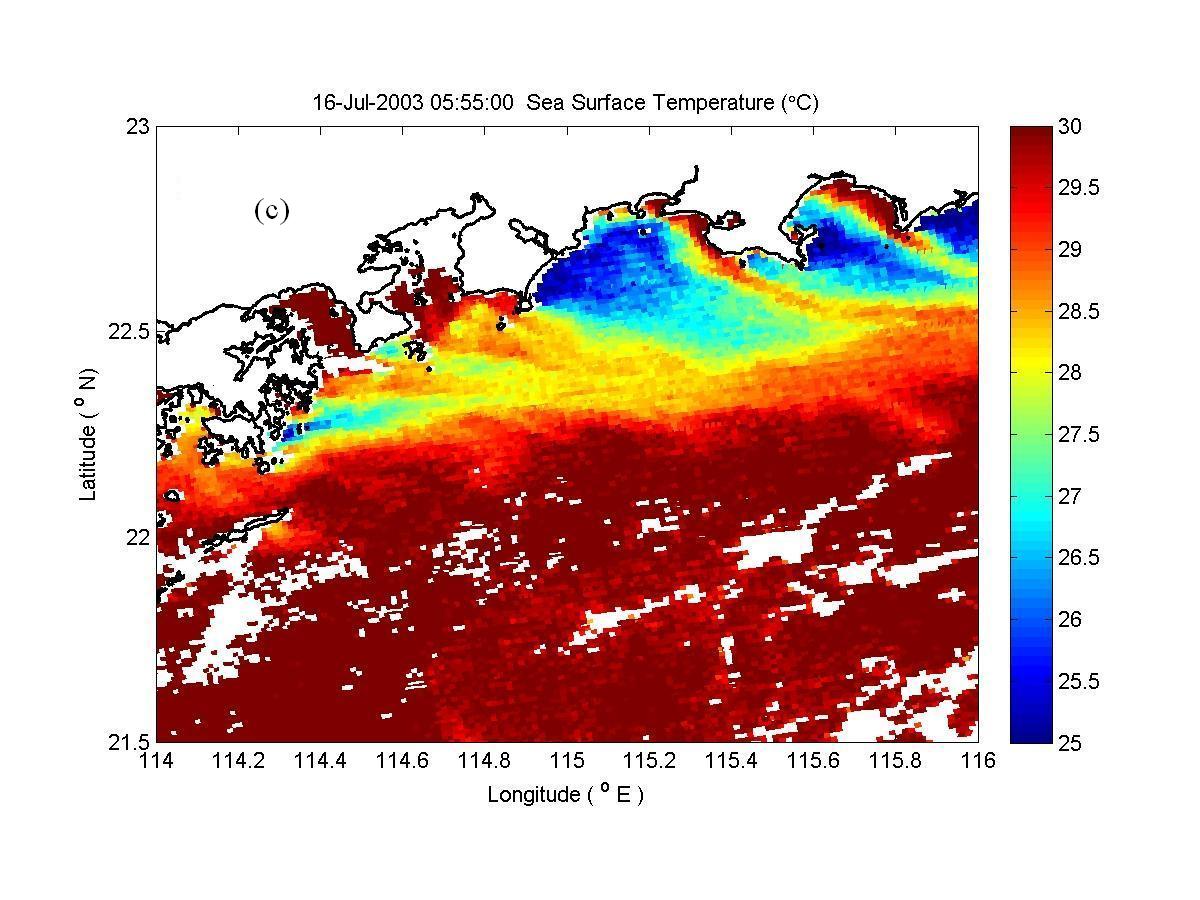 we dected the dramaticlly offshore transport of cold water off Guangdong coast, but I failed to reproduce this phenomenon. Attached are MODIS SST and my model result. Any suggestions are greatly appreciated