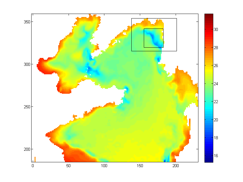 Hi,All,I'm running a ROMS case in the Yellow Sea, China, with tides switched on. I got abnormal high temperature along the coast in summer, and abnormal low temperature near the front. The attached figure is the surface temperature in August. It seems to me that the tidal front is too strong. How to deal with it. Which parameters should I play with? Thanks.