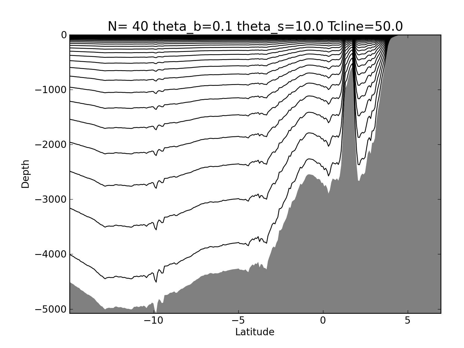 vgrd = pyroms.vgrid.s_coordinate_4(hc, theta_b, theta_s, Tcline, N, hraw=hraw)