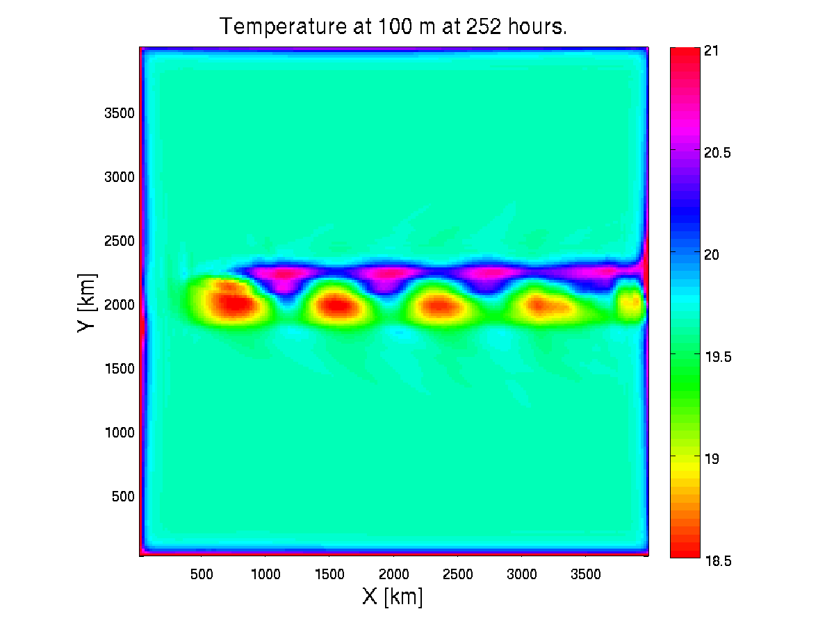 Attached there are few frames of an horizontal section of the temperature at 100 m depth.
