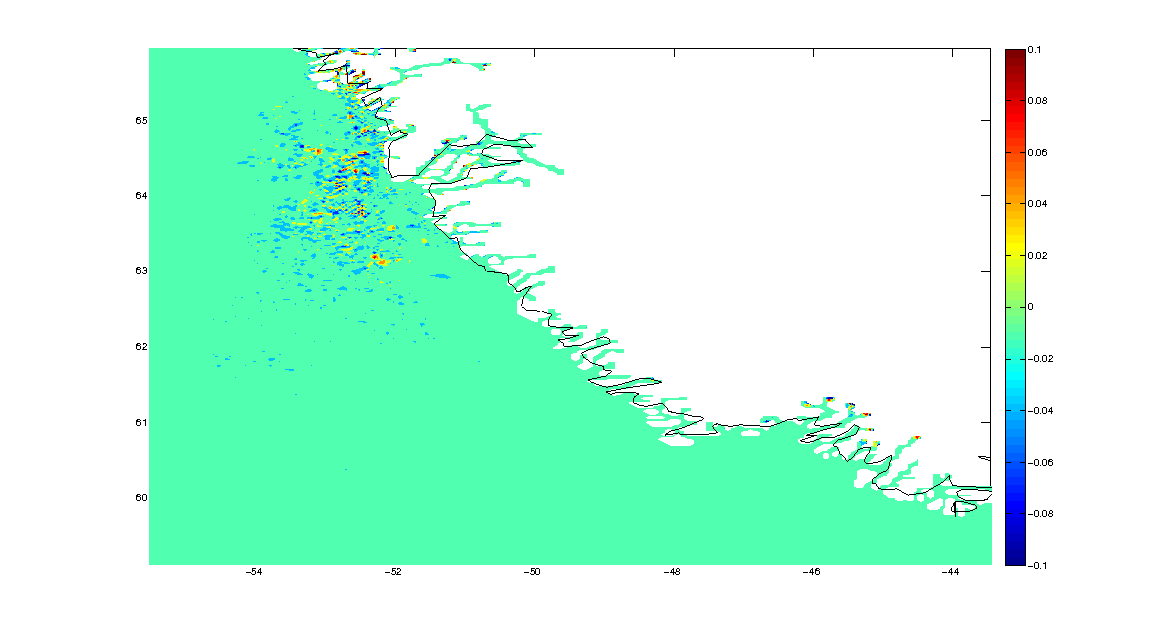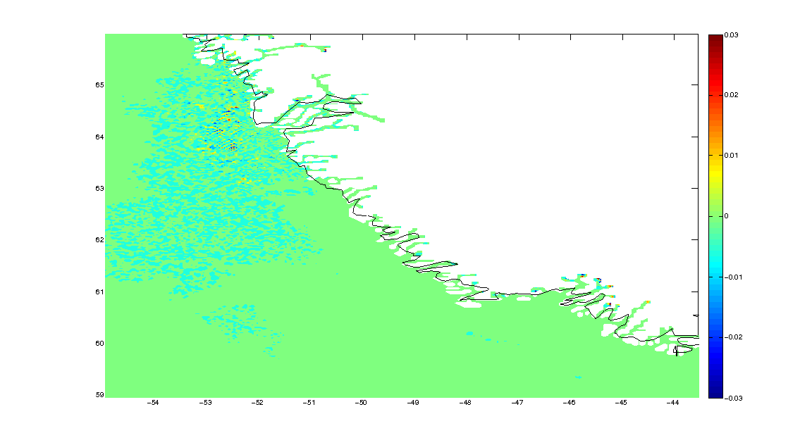 Clearly, there are something (noise or so)? I have also tried to give a very small discharge rate, say 2m^3/s, the results are almost identical. But if I changed the Salinity with time in the river forcing file (with river_flag as 2) to simulate freshwater input, even still with ZERO discharge rate, I can still clearly see the big difference at all the river input locations. Not sure what is wrong. Can anyone explain to me what I should do to correct this?