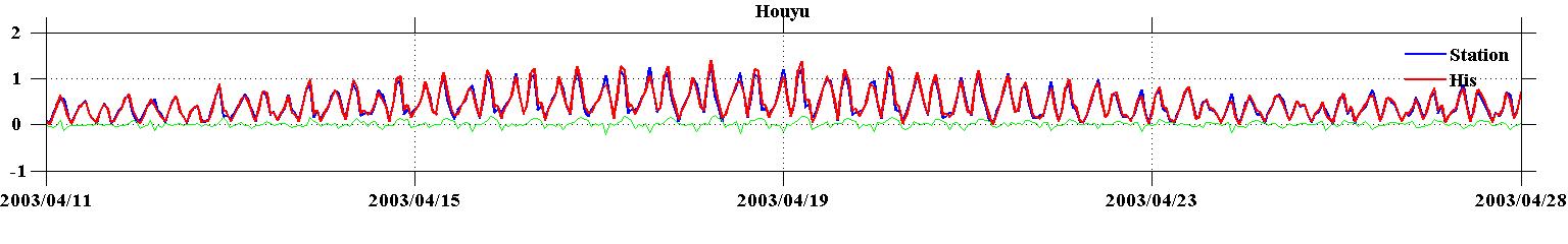 (Blue:station results,Red:his results,Green:difference between station and his results)