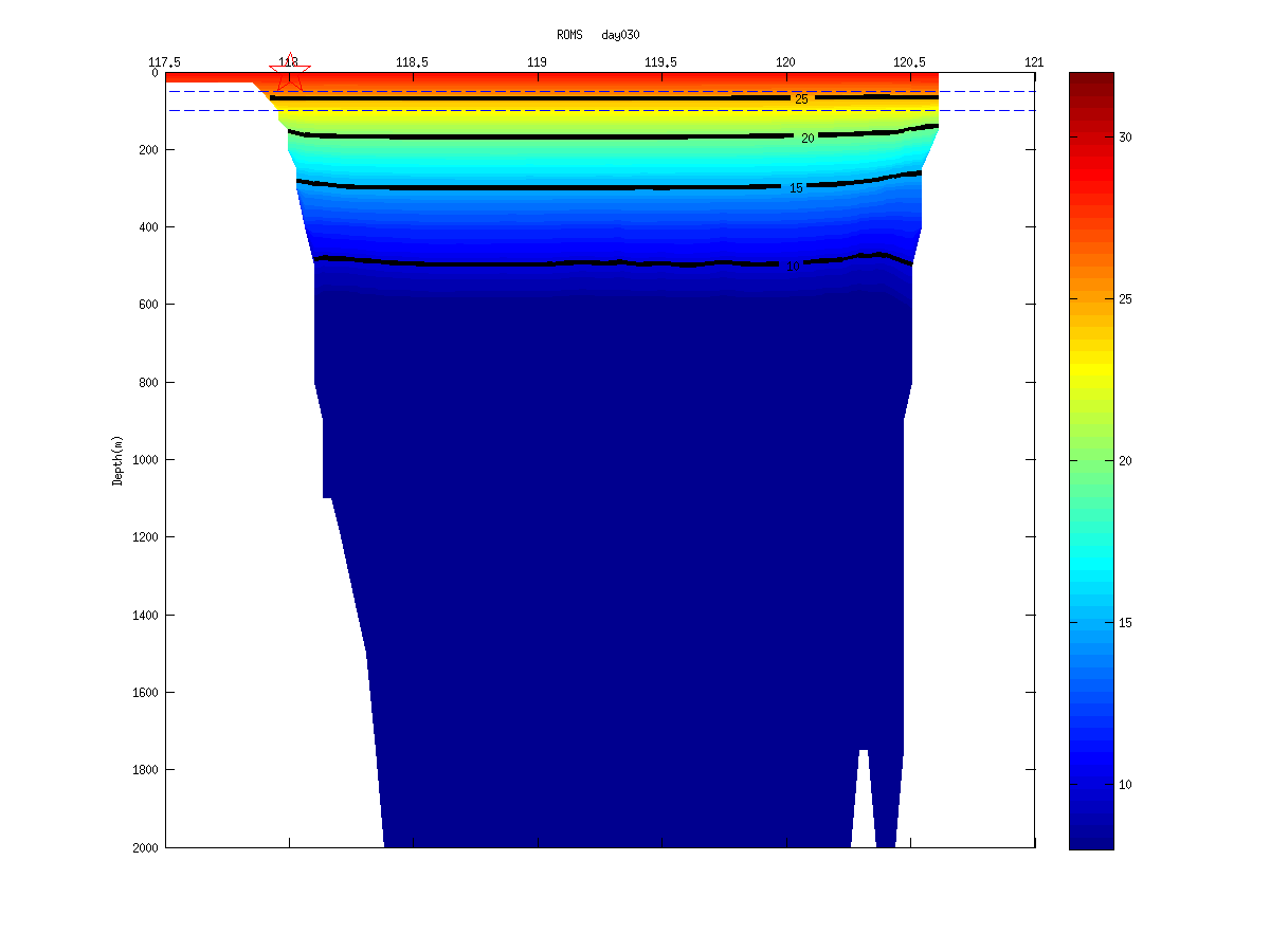 I would set diffusion of momentum to zero, and even better than setting the diffusion of temperature and salinity to zero, I would fix them by using TS_FIXED suppressing evolution of density. I would use the mean temperature and mean salinity profiles for my region (averaged from the initial conditions or from the model providing boundary conditions). Using the same vertical profile in each grid cell of course, so that the only difference from cell to cell is how it is discretized. As Kate mentioned you need a density profile beyond constant/linear with depth. I would keep an eye on where the pycnocline (here pycnocline=max buoyancy frequency) is: Are the strongest pge currents near the pycnocline depth? if so, I might need to make sure the test will work for my application -- the pge could be dependent to where the pycnocline is, and therefore a different density profile might generate a different pge. The pycnocline depth would interact differently with the topographic features found at different depths.