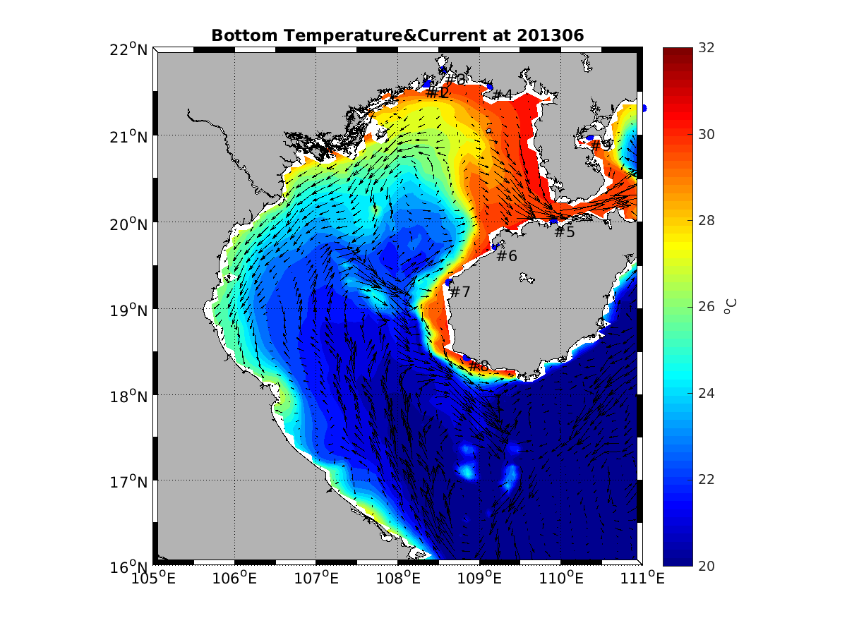 Attached are 2 monthly averaged plots of two revisions about bottom temperature&velocity at June 2013 .The current patten is almost the same while newer revision shows a faster current and warmer bottom water,especially at the coastal zone.