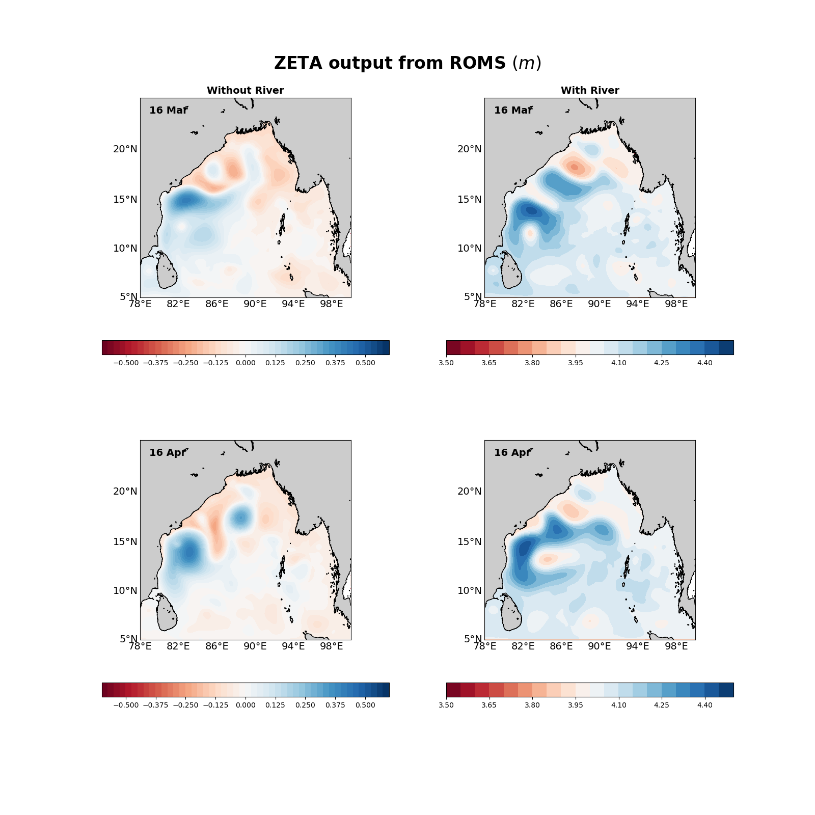 3 After analyzing the output I compared the zeta which seems to be very high in the case when the river is added