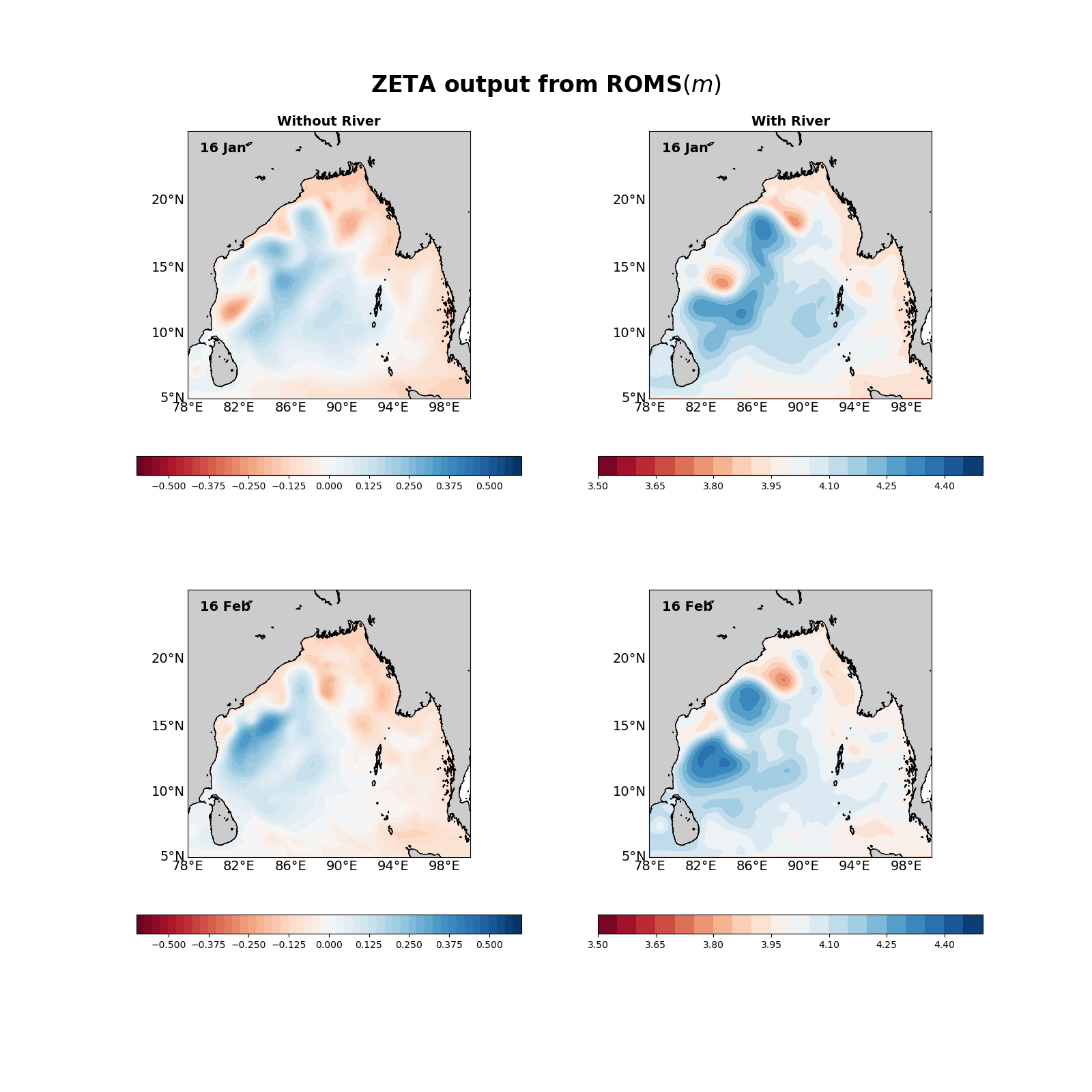 3 After analyzing the output I compared the zeta which seems to be very high in the case when the river is added