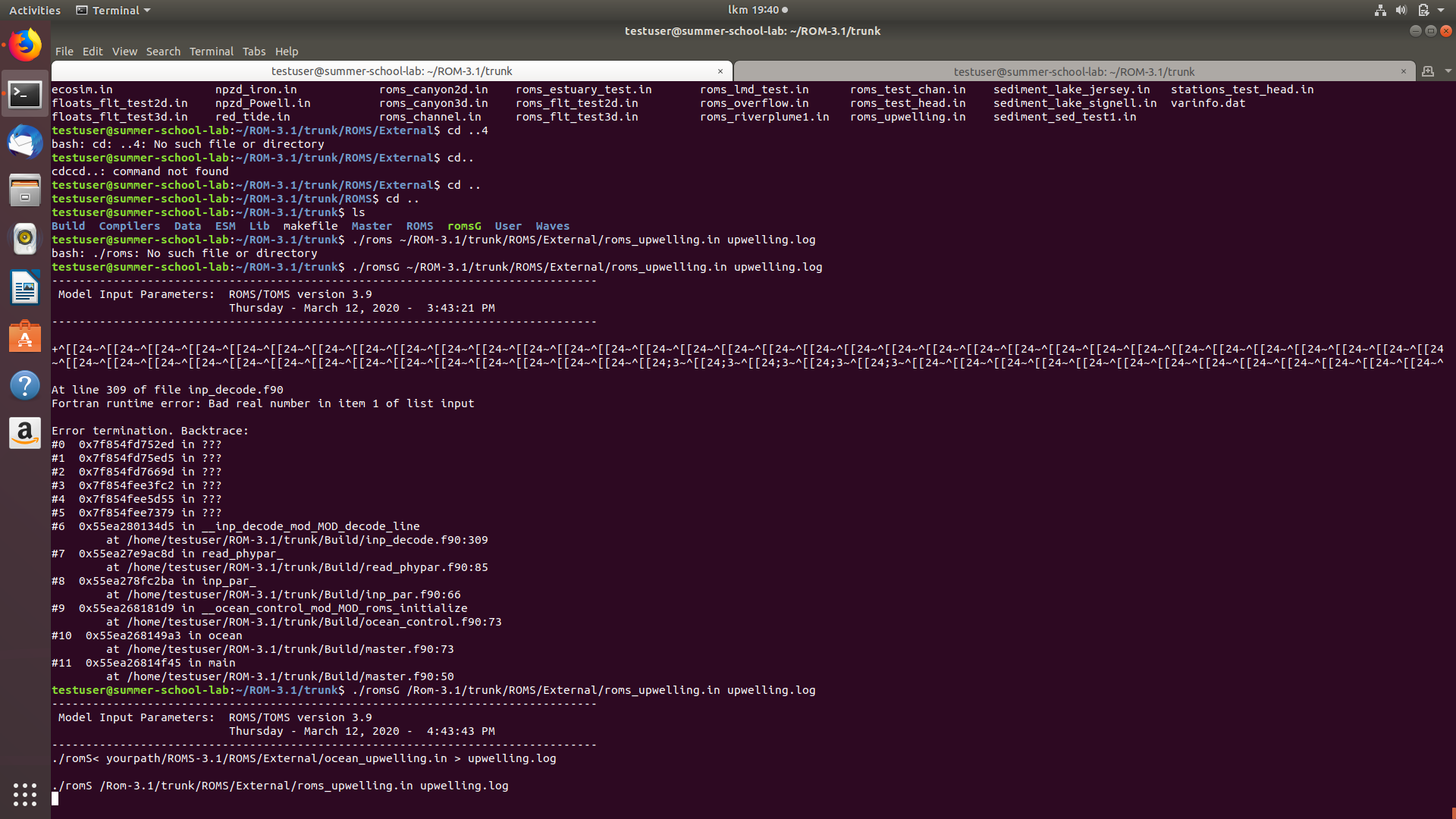 I came in the step of ROMS' functioning test and have been blocked in this comand line:
