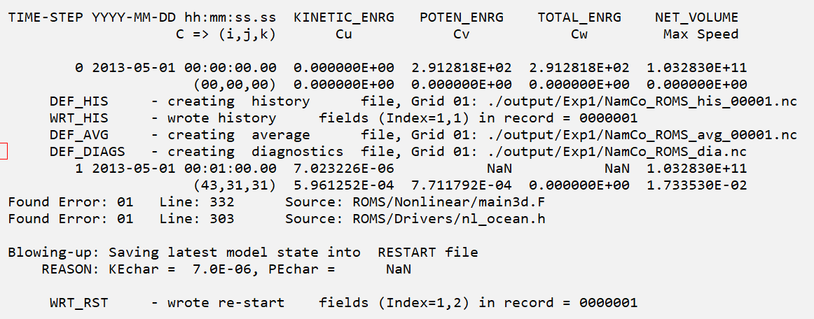 I'm recently studying the kshedstrom version <https://github.com/kshedstrom/roms/tree/master>, and the model blow up at the first timestep. However, the same input 'grid.nc, initial conditions, and atmospheric forcings' can work with the roms-3.7 version. The following is the running log <intelmpi_3181622.out>.