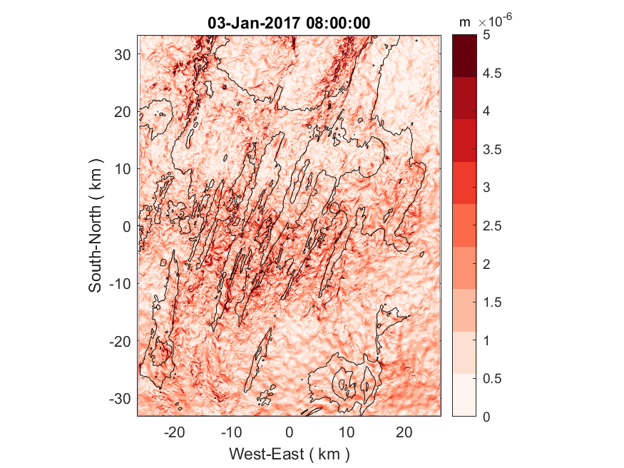 Thanks a lot for all the instructions. I managed to rebuild my grids using the fine-to-coarse approach and finished a test run using one-way nesting. The refinement ratio between the coarse and fine grids is 3. I have attached an animation showing hourly sampled sea-surface gradients over a 2-day span since the start of the simulation. Unfortunately, those much dreaded horizontal strips are still there despite the change in the domain size of the fine grid and switching to the fine-to-coarse approach. Note that those stripes seem to come and go like a surface wave originating from the southern nesting interface. As Stefan pointed out previously, the wavelength suggests a period of 30 sec, which is the coarse-grid time step. So it seems that a perturbation in sea surface is introduced at the southern interface each time the fine grid reads outputs from the coarse grid. I do not know if this is a time stepping issue as suspected by Ivica but my previous test seemed to suggest those stripes are gone after using the same time step for both fine and coarse grid.