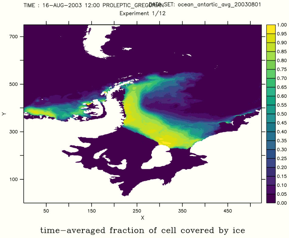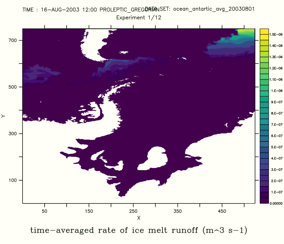 Also, I am trying to understand how the melt rate from the ice shelf (?) and sea ice works. Also, the sea ice outputs units (time-averaged melt rates - in m3 s-1) seem a little confusing. The highest values in my monthly outputs appear in lower latitudes(wai,wio), where we, apparently, don't have sea ice:
