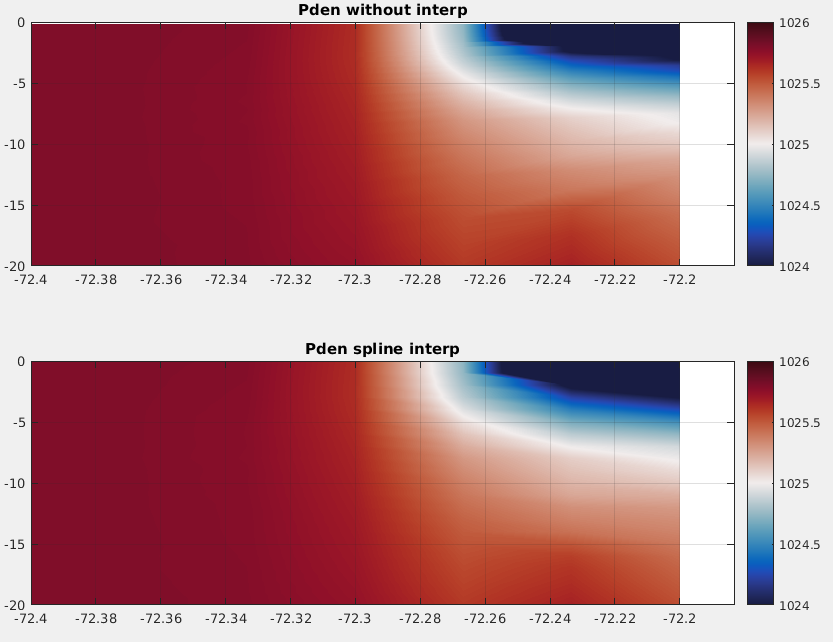 I'm trying to interpolate the data in the vertical to a finer grid. I have the data order as (vertical_data,longitude_location) and I'm using a linear interpolation over one column at the time. However, the result is not good since the gradient of the field it's modified by my method. I have attached a image to show what I mean. So my question is, is there any "recommended" technique to interpolate in the vertical?