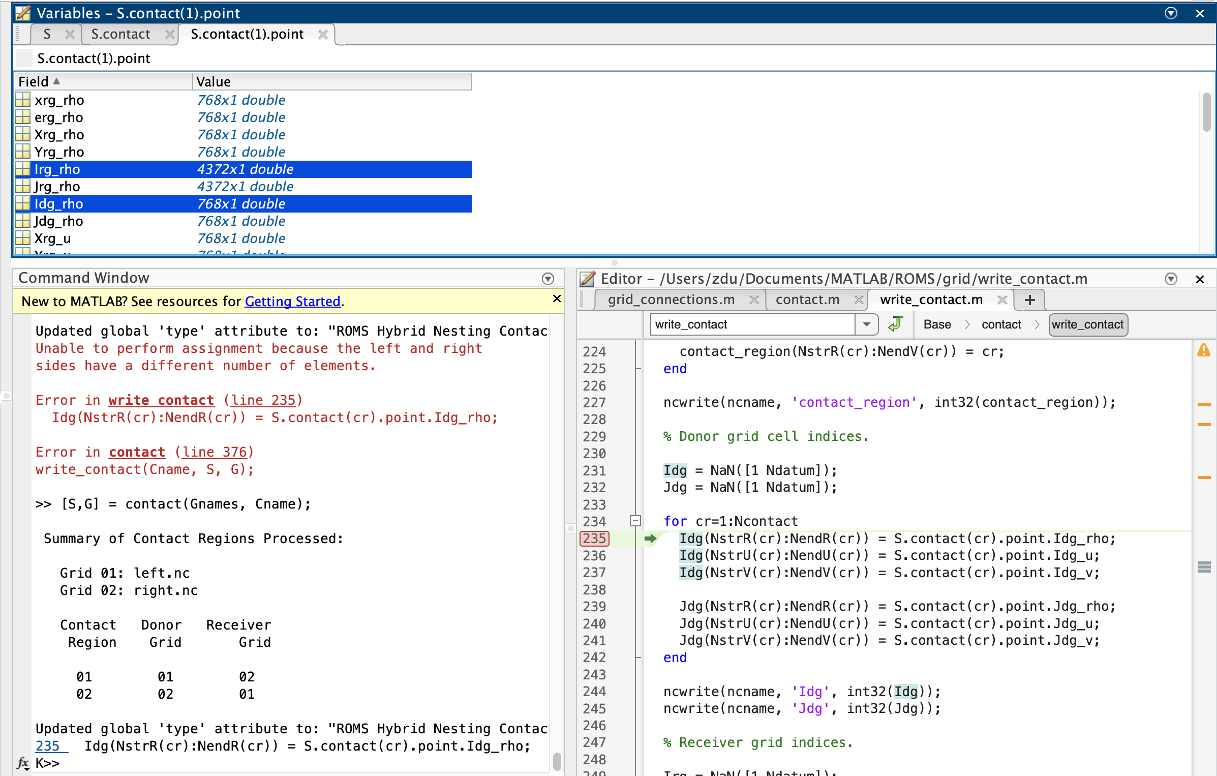 dg = S.contact(cr).donor_grid;Does anyone have a modified contact.m script that can work for my case? I hope that the ROMS developers could revise grid_connections.m and contact.m, thank you!