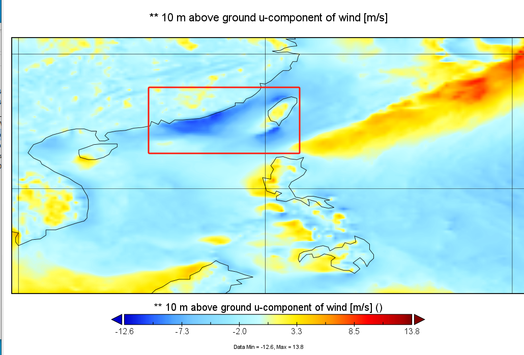 Then I output uwind and vwind in his file, and compared with the input wind field of 10m, the output uwind of roms is also too large.