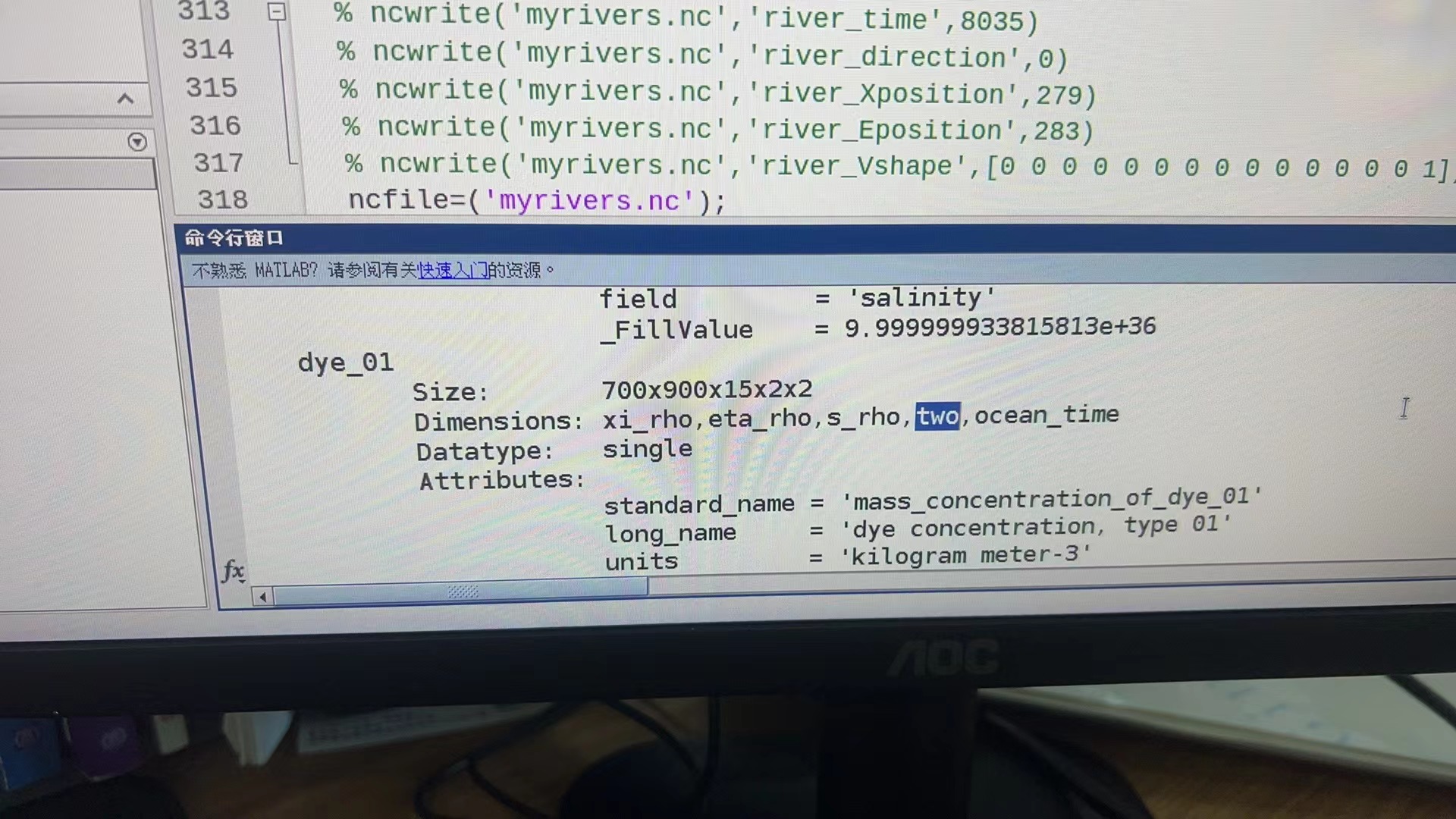 I want to simulate seasonal release of the dye, so I need to add a value of a certain grid cell in the 'dye' variable in the rst file, but I found that there is a extra dimension 'TWO' in the variable. What does this dimension represent? Thanks for your attention!