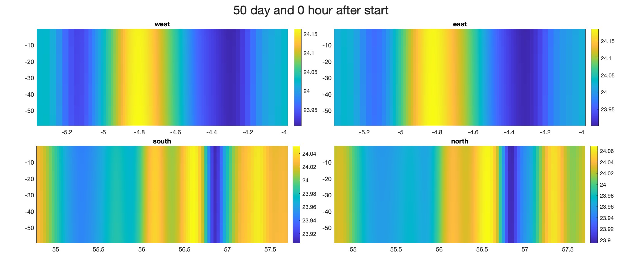 Here's the temperature change in time on four boundary: Any insights or advice would be greatly appreciated!