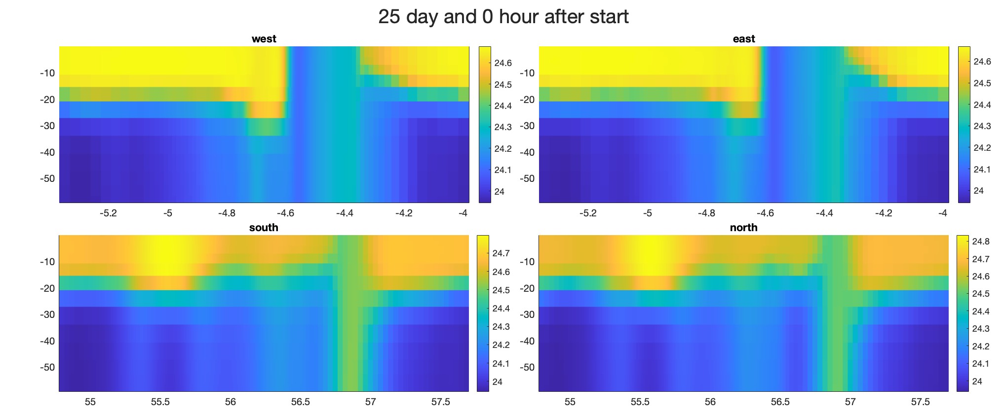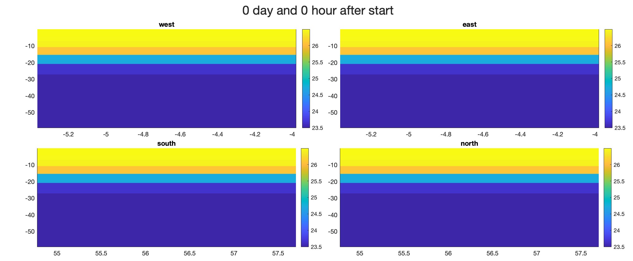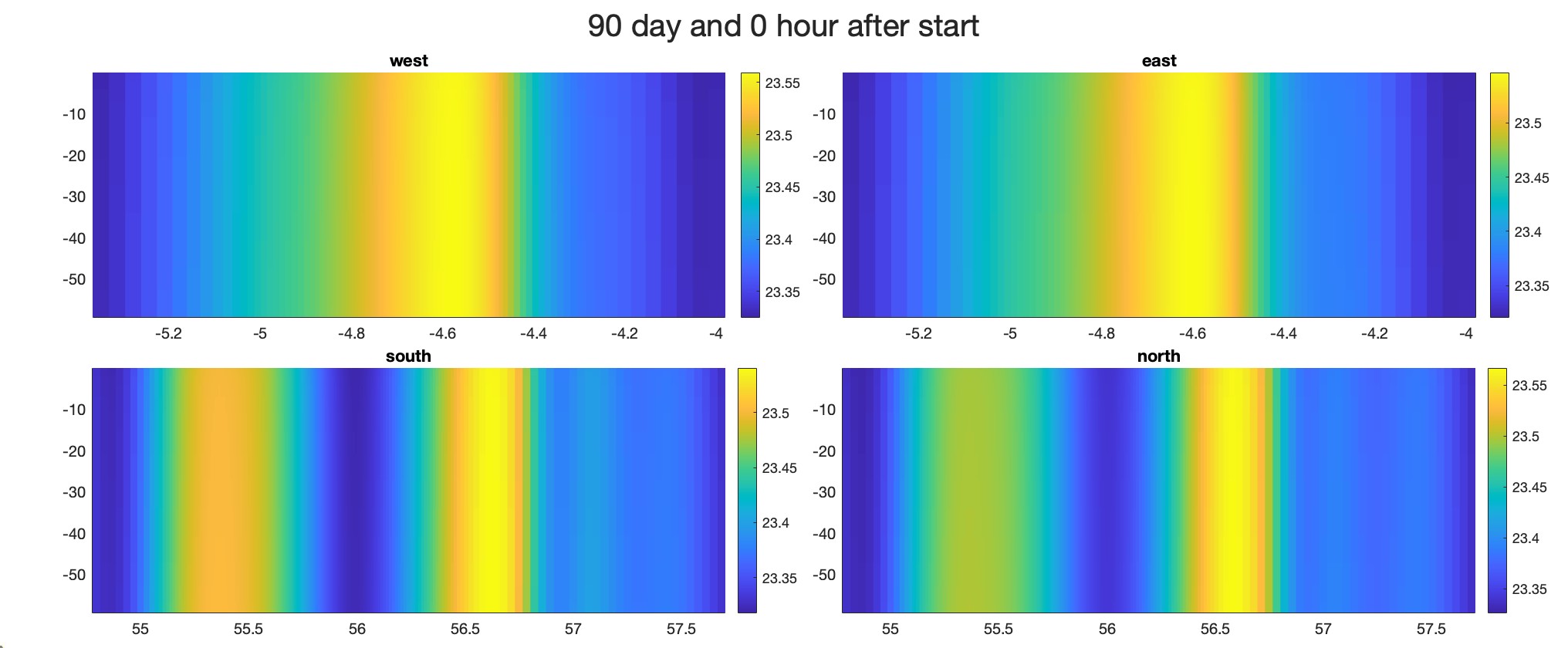 I’m currently working on an idealized ocean model, and I’m facing an issue with maintaining the ocean stratification. Over time, the stratification disappears. So I'm trying to clamping the temperature and salinity inflow boundary conditions on the west and north edges.